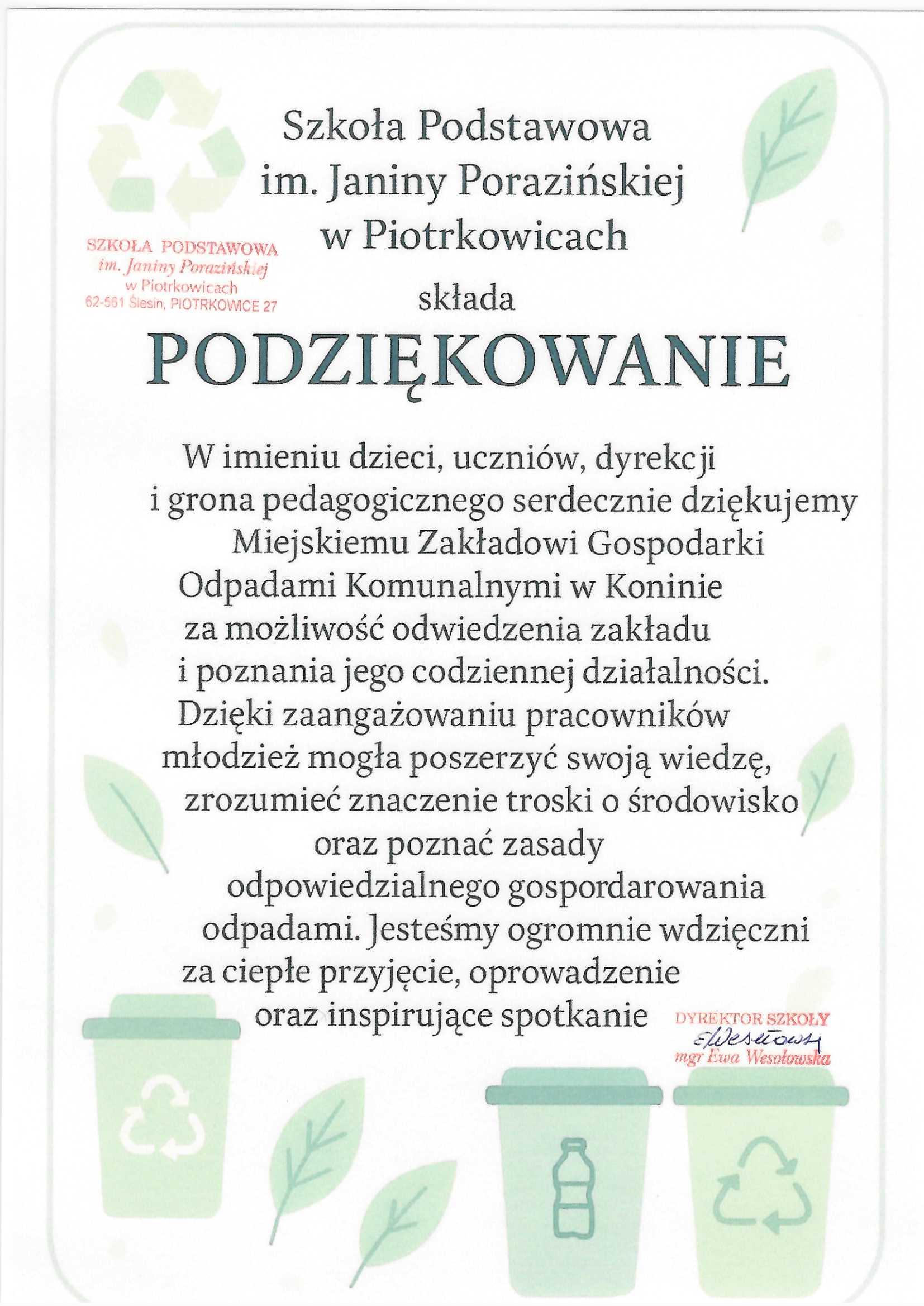 Podziękowania dla Spółki